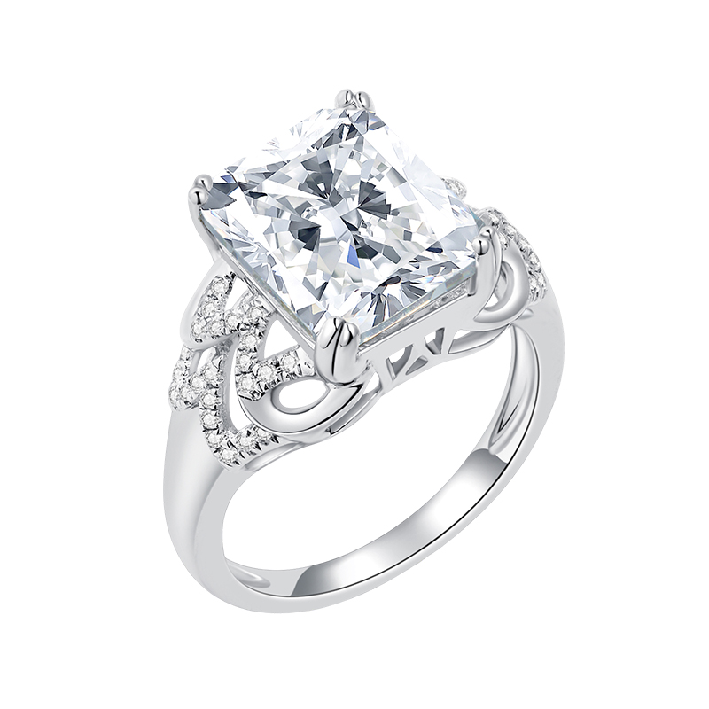6.5 CT Emerald Cut Cubic Zirconia Engagement Ring