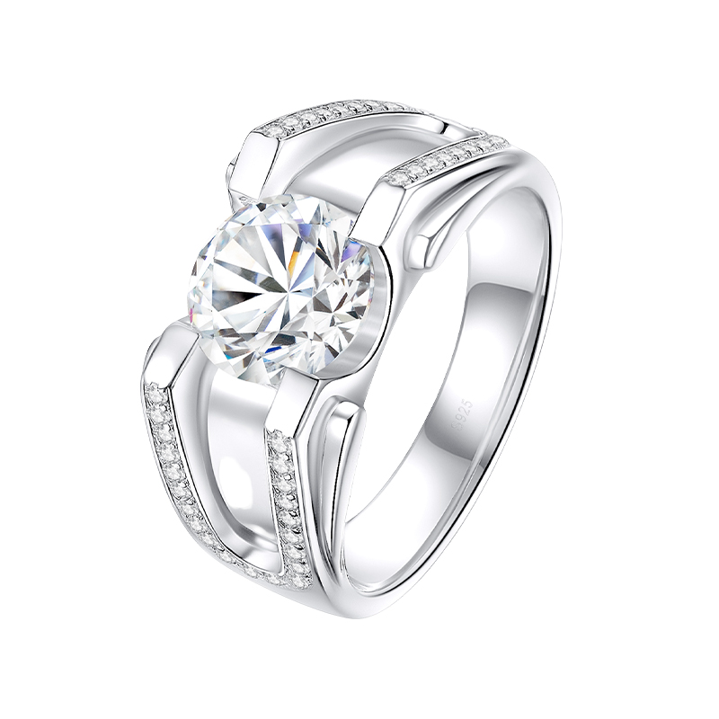 Both the main and secondary stones are moissanite, and the bezel sizes support Mido sizes 4 to 12. The entire piece is made of 925 silver, using metalworking techniques including pattern making, wax casting, casting, setting, and electroplating (palladium base with rhodium top). Custom orders based on provided images or samples are welcome. The processing price is calculated based on the international silver price of 7 RMB/gram; however, if there are any changes, the actual silver price will be used for settlement.