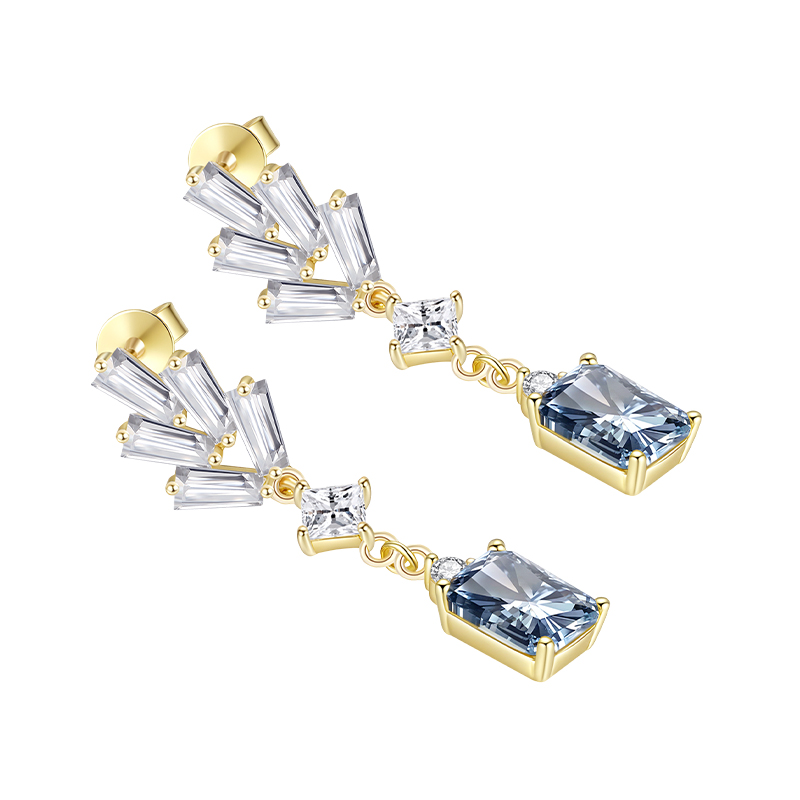 5.2CT Moissanite Dangle Drop Earrings for Women Radiant Cut Fancy Light Blue Color VVS1 Clarity Earrings S925 Sterling Silver with 9K Gold Plated Hypoallergenic Square Jewelry Ideal Gift for Her