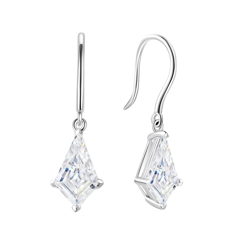 Moissanite Dangle Drop Earrings for Women,2.6CT Kite Cut D Color VVS1 S925 Sterling Silver Hook Earring with 18K White Gold Plated Hypoallerge Dangle Drop Earring