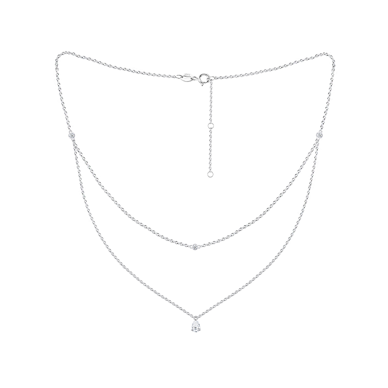 Moissanite Lariat Choker Necklace for Women 925 Sterling Silver 18K White Gold Plated Hypoallergenic Double Layer Pendant